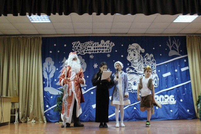 26 декабря в нашей школе прошёл долгожданный Новогодний праздник для учащихся 1 - 4 классов, неповторимая атмосфера предстоящего праздника охватила всех. В зале, где проходили новогодние представления, было красиво, уютно и многолюдно. Зал, полный зрителей, превратился в театр, на сцене которого разыгралось настоящее новогоднее чудо.