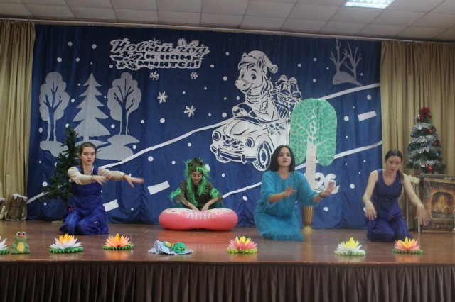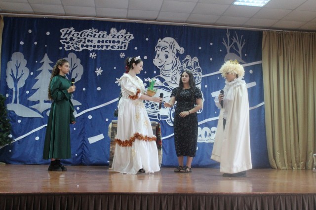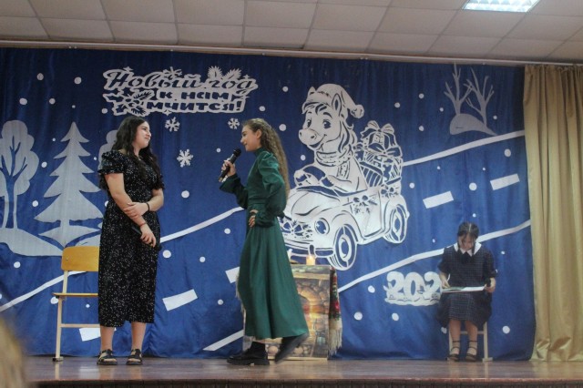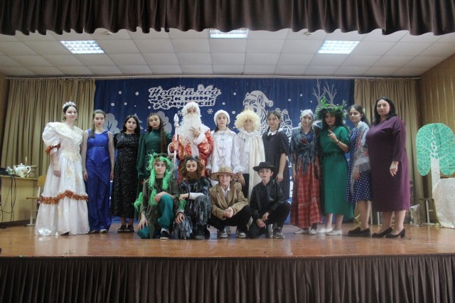 Новый год для детей – это пора сказок и чудес. В это время дети ждут прихода Деда Мороза, Снегурочки и, конечно же, подарков. И в качестве подарка дружный творческий коллектив ребят 7 класса подарили зрителям новогоднюю сказку «Двенадцать месяцев на новый лад». Ребята вместе со своими классными руководителем проявили невероятную фантазию при оформлении сцены и костюмов. Сказка сопровождалась танцами и песнями.