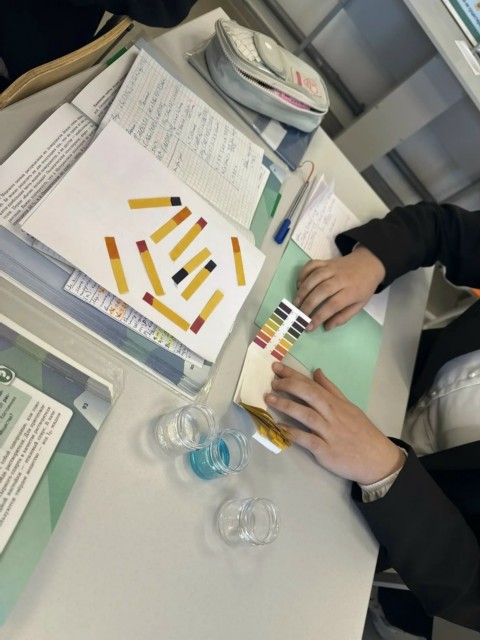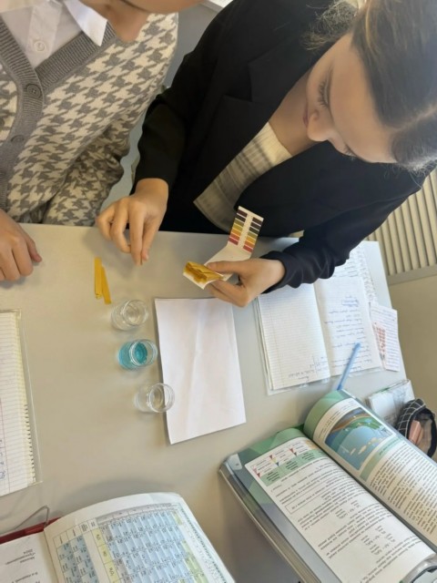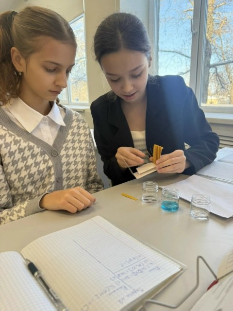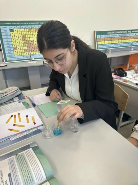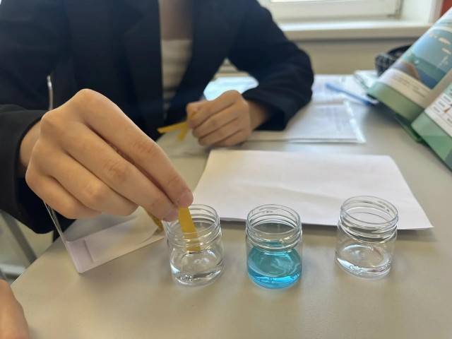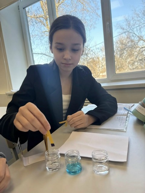 На уроке химии в 8 классе ученики узнали о химических индикаторах. Индикаторы — это вещества, которые меняют цвет, начинают светиться или образуют осадок при изменении концентрации какого-либо вещества. В рамках занятия школьники использовали лакмусовую бумагу, чтобы определить, как различные среды меняют свой цвет при взаимодействии с индикаторами.