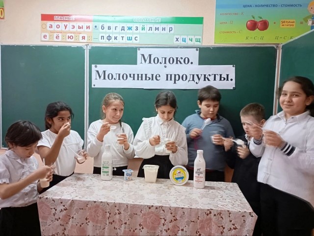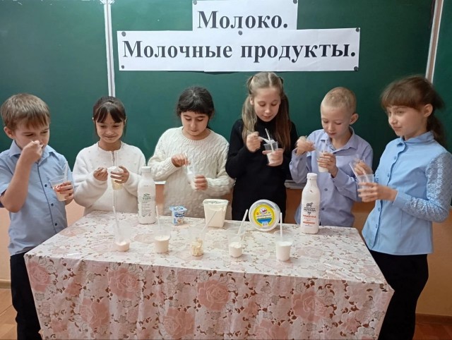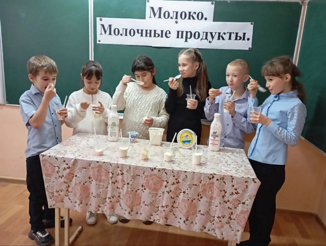 Занятие по правильному питанию в 3 классе было посвящено основам рационального питания с акцентом на молоко и молочные продукты. Учащиеся, выполняя задания в рабочих тетрадях, познакомились с важностью молока и молочных продуктов, как источника необходимых питательных веществ для роста и развития. При просмотре презентации , познакомились с различными видами молочных продуктов, а затем каждая группа получила реальные молочные продукты, и определили название продукта, и рассказали, чем он полезен. Учащиеся пришли к выводу, что молоко очень полезный продукт и в нем содержится много полезных веществ: жиры, белки, минеральные соли, витамины и многое другое.