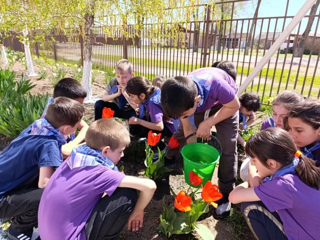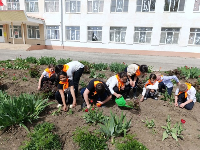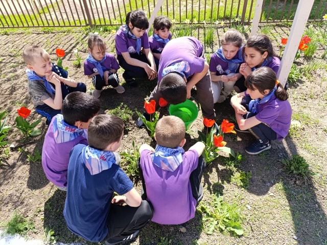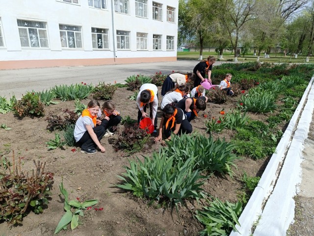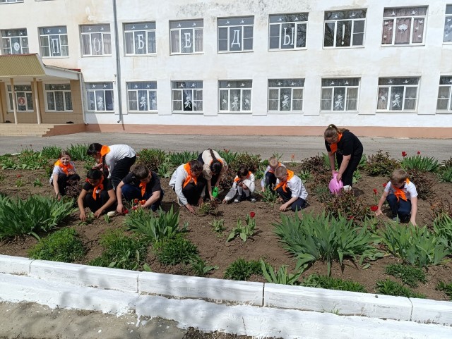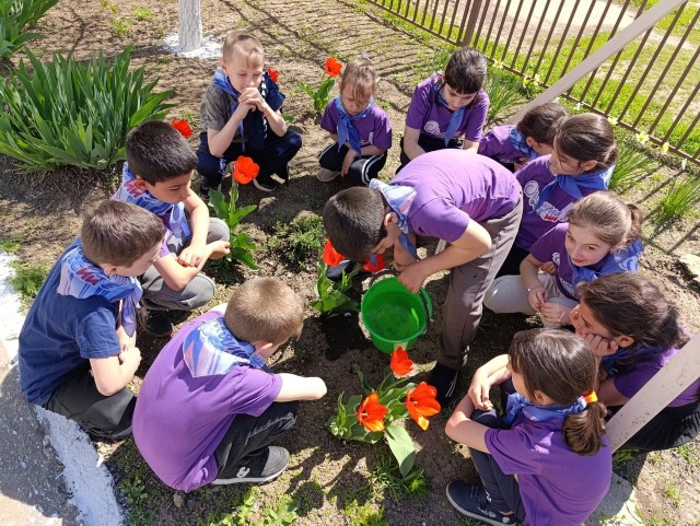 Советник директора по воспитанию и взаимодействию с детскими общественными объединениями Охрий Татьяна Владимировна организовала акцию «Клумба Орлят» совместно с программой развития социальной активности обучающихся начальных классов «Орлят России».