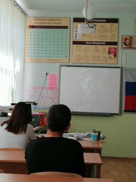 Ученики посмотрели фильм «В бой идут одни старики», который рассказывает о легендарной «поющей» эскадрилье. Капитан Титаренко подбирал себе новичков, а его «старикам» было не больше двадцати лет. Но пополнение из лётных училищ ускоренного выпуска всё равно не пускали в бой, пока была возможность.