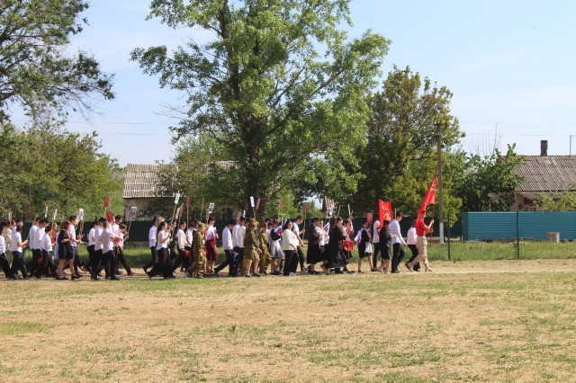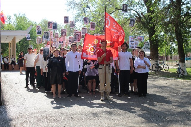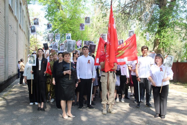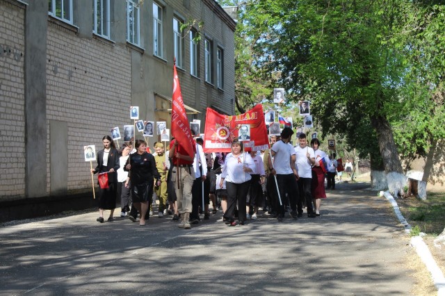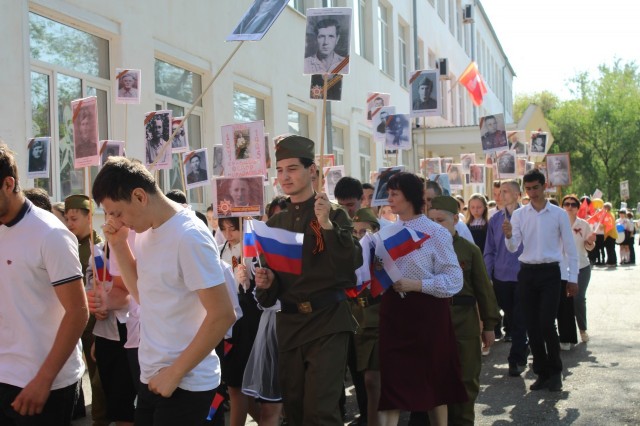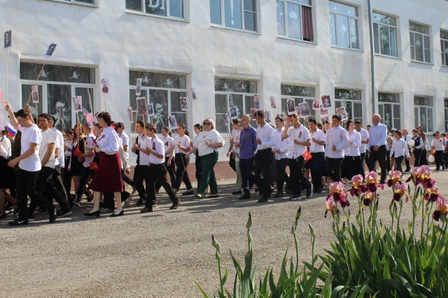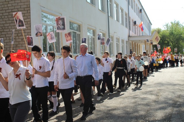 В строю «Бессмертного полка» прошли ученики всех классов, от младших до старших. Вместе с ними – учителя и администрация школы.