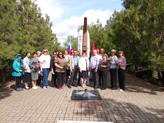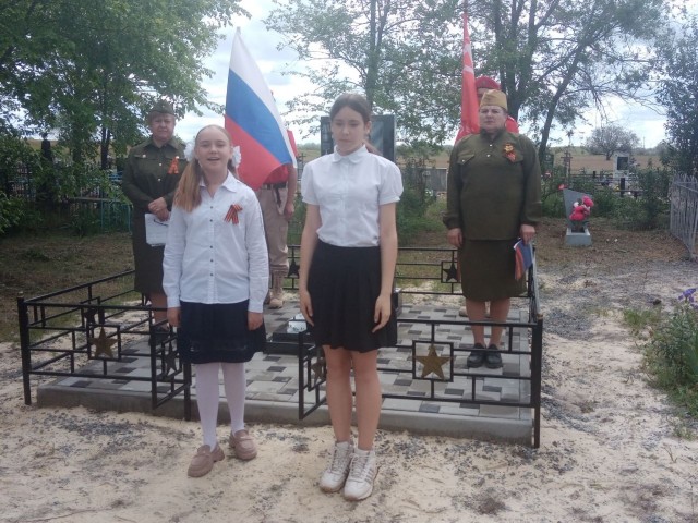 К памятнику Мокроусова И.Т, к могиле Михерского Д. В. и к мемориалу погибшим воинам были возложены цветы и венки.