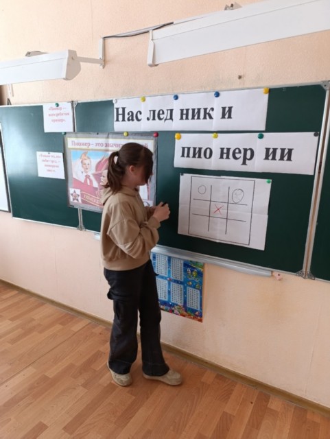 Советник директора по воспитанию и взаимодействию с детскими общественными объединениями Охрий Татьяна Владимировна организовала мероприятие «Наследники пионерии». Игра является аналогом известных с детства «Крестики-нолики» и проходит по такой же механике. Цель игры: актуализация знаний о пионерском движении, а также развитие логического мышления, стратегического планирования, коммуникативных навыков и умения работать в команде в процессе интерактивной игровой деятельности.