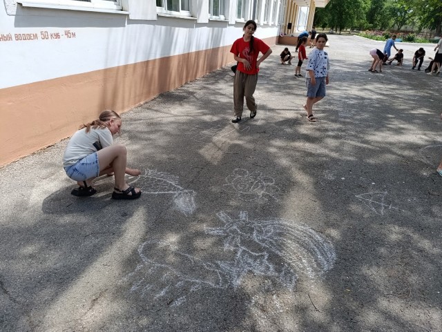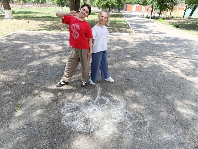 Советник Охрий Татьяна Владимировна провела акцию «Планета детства». В рамках акции участники смогли изобразить на асфальте рисунки, посвященные детству и дружбе.