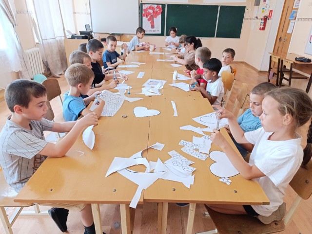 Советник директора по воспитанию Охрий Татьяна Владимировна организовала творческую мастерскую «С Россией вместе», в рамках которой участники смогли создать тематические поздравительные открытки.
