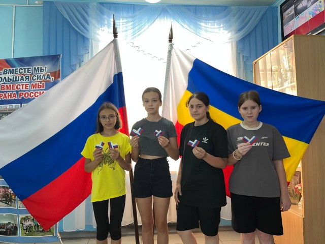 В преддверии празднования Дня Российской Федерации воспитанники пришкольного лагеря «Цветик-семицветик» совместно с воспитателями приняли участие во Всероссийской акции «#РодинойГоржусь» - «Сердце России». Участники сформировали ленты триколор в форме сердца и прикрепили их на грудь жителям Ростовской области.