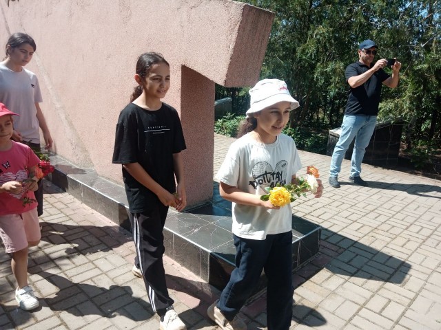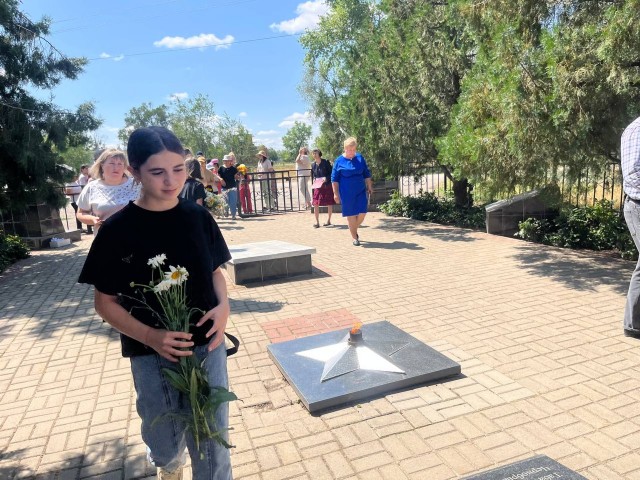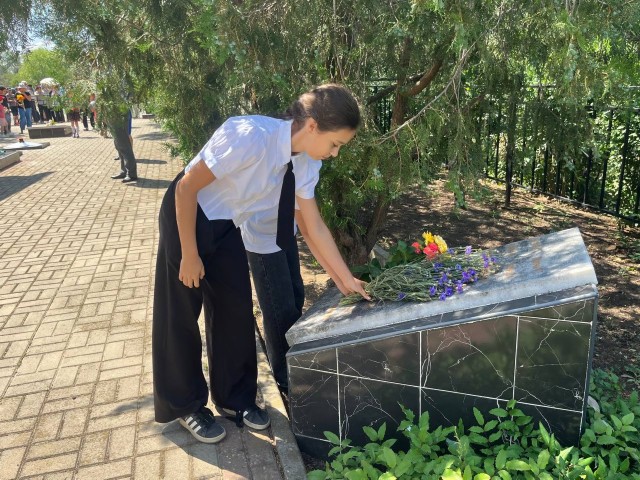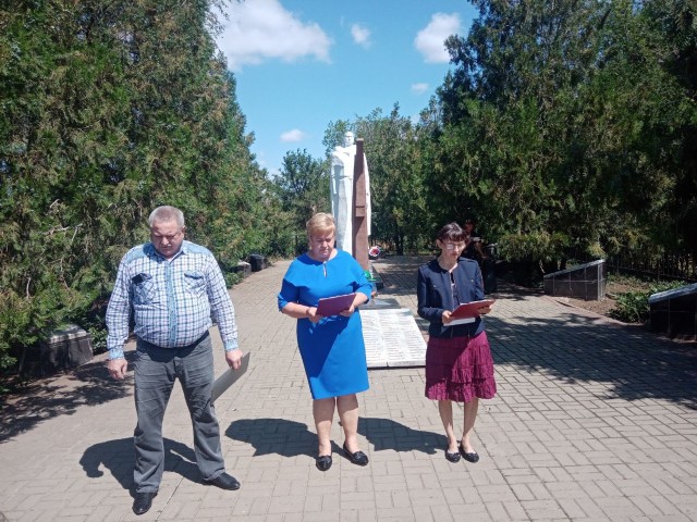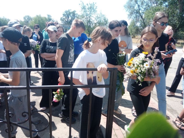 Сегодня, в преддверии Дня памяти и скорби, воспитанники пришкольного лагеря «Цветик – семицветик» возложили цветы к мемориалу «Павшим Воинам Великой Отечественной войны 1941-1945 годов». Присутствующие почтили память погибших минутой молчания.