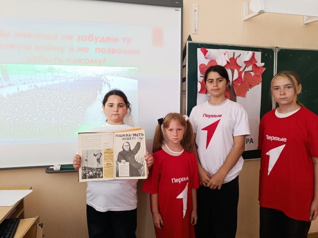 22 июня одна из самых печальных дат в истории России – День памяти и скорби – день начала Великой Отечественной войны. В рамках Всероссийской акции «Помним о важном» в 3 отряде активистами «Движения Первых» было проведено тематическое мероприятие. В этот день мы вспоминаем всех погибших в боях, замученных в фашистской неволе, умерших в тылу от голода и лишений. Мы скорбим по всем, кто ценой своей жизни выполнил святой долг, защищая в те суровые годы наше Отечество.