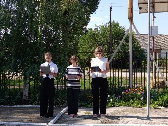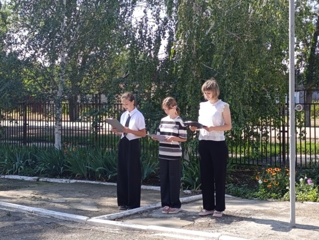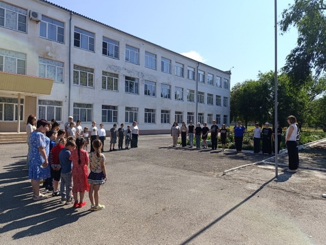 Советник Охрий Татьяна Владимировна совместно с воспитанниками оздоровительного лагеря "Цветик-семицветик" провела линейку, во время которой дети минутой молчания почтили память о предках, отстоявших право на жизнь в годы Великой Отечественной войны.