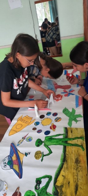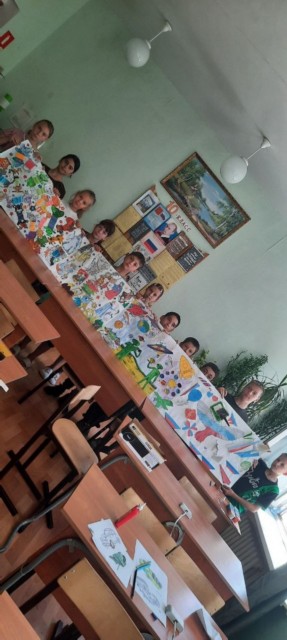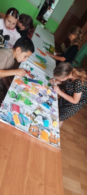 Веселое, задорное, звонкое, яркое лето в лагере «Цветик – Семицветик» заканчивается. Очень захотелось ребятам из всех четырех отрядов запечатлеть самые яркие его странички. Каждый отряд изобразил на необычном 4-х метровом «холсте» то, что им понравилось в лагере больше всего. И появились такие странички – у 1-го отряда «Зоопарк животных - «гофрочудиков» благодаря впечатлениям от Дня экологии в лагере, от мероприятия на кружке «Птицы, рыбы и звери в души людям смотрят»; 2-му отряду запомнились Дни Пушкина. Никогда не престанут они восхищаться такими милыми и родными сказками великого поэта. Конечно же, русские народные сказки с их народной мудростью продолжают волновать воображение! А необыкновенные, загадочные, таинственные сказки Андерсена, Гофмана и Гауфа! 3 –й отряд отобразил на своей страничке космос, который таит в себе много неизведанного, непонятного, но от этого еще более притягательного! А 4-й отряд посвятил свою страничку любимой России. Они использовали интересные художественные приемы – объемные фигуры, поделки в стиле оригами. Многое узнали дети за этот месяц в лагере, многому научились. Они стали еще более здоровыми, еще более умными, воспитанными! Ребята крепче подружились друг с другом!