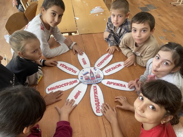 4 ноября вся Россия отмечает «День Народного Единства». Накануне праздника в школьном лагере «Цветик –семицветик» во втором отряде прошли мероприятия, посвященные этой дате. В ходе мероприятий дети познакомились с историей возникновения праздника, подвигами наших предков во имя независимости Родины. Ребята вспомнили о том, как велика и красива наша Родина, как богата событиями её история, закрепили свои знания о государственных символах, а также познакомились с культурой и традициями некоторых народов нашей страны. Проведение таких мероприятий помогает воспитывать чувство любви к Родине, гордости за неё, за народ, населяющий Россию. Основная цель мероприятий, посвященных празднованию Дня народного единства — сформировать у детей уверенность в том, что Россия – великая многонациональная страна с героическим прошлым и счастливым будущем. В конце мероприятия ребята старательно делали открытки и приклеивали детали, обсуждали идеи и помогали друг другу, что сделало занятие дружелюбным и увлекательным. В завершении у каждого вышла уникальная открытка, отражающая их старание и творчество.
