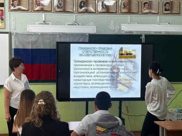 26.09.2025 в рамках мероприятия «Неделя большой профилактики» с обучающимся 9 класса классным руководителем Сосниной Людмилой Александровной была проведена профилактическая беседа, направленная на повышение уровня правовой грамотности и правовой ответственности обучающихся. В ходе мероприятия обсудили с учащимися проблему преступности среди несовершеннолетних.
