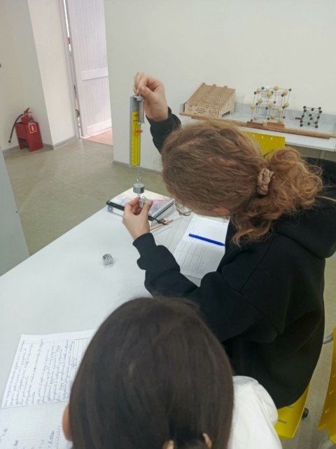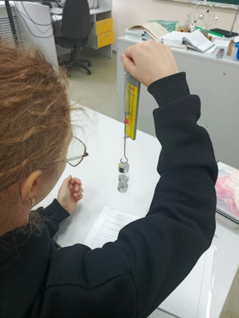 На уроке физики в кабинете «Точка роста» ученики девятого класса провели лабораторную работу на тему «Определение жесткости пружины».