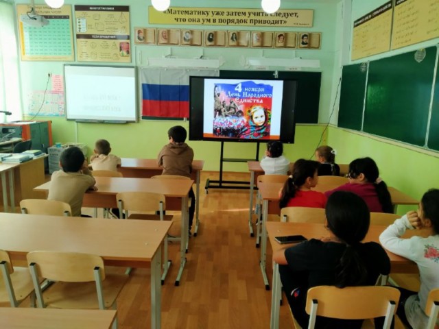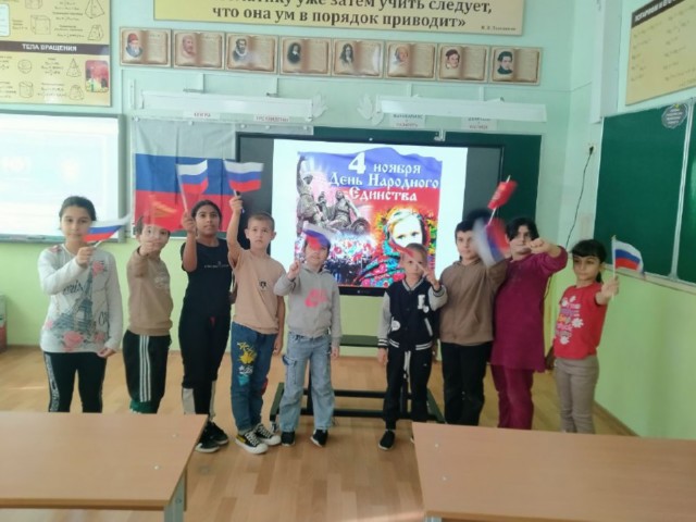 4 ноября вся Россия отмечает ДЕНЬ НАРОДНОГО ЕДИНСТВА. Это день соединения прошлого, настоящего и будущего, объединения всех людей нашей огромной страны в любви друг к другу, к своему краю, к России. Празднуя День народного единства, мы проявляем любовь и уважение к прошлому нашего государства. Этот праздник – символ гордости за наших предков, которые отстояли свою независимость. В преддверии празднования Дня народного единства в школе прошли тематические мероприятия, направленные на патриотическое воспитание школьников. Праздник большой истории, праздник гордости за наше Отечество.