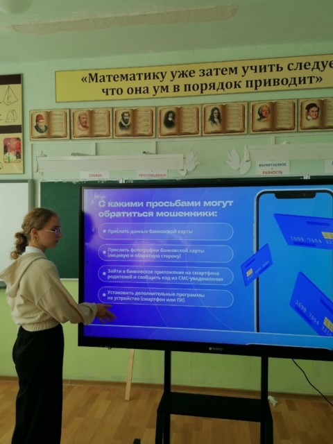 Для противодействия мошенническим действиям с обучающимися 9 класса проведен классный час по правовому просвещению несовершеннолетних. Учащимся доведено до сведения о различных случаях мошенничества и способах противостояния им.