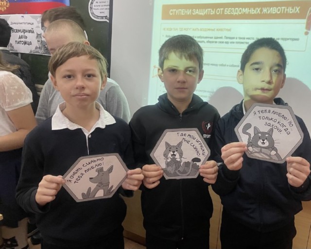 Занятие «Домашние питомцы» было посвящено формированию ответственного отношения к домашним животным. Цель урока — актуализировать у школьников представления о роли и значении питомцев в жизни человека. Ребята услышали об основных обязанностях хозяев животных, о правилах поведения при встрече с бездомными собаками и кошками, а также о том, как государство участвует в защите «братьев наших меньших».