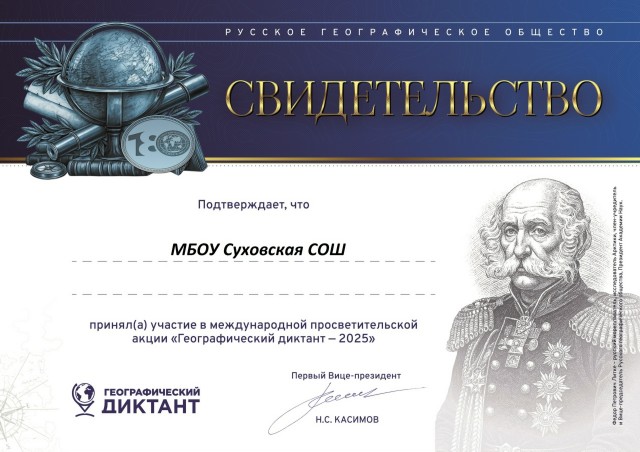 «Географический диктант-2025» прошел в МБОУ Суховской СОШ. Пройти диктант онлайн можно только на сайте dictant.rgo.ru — формат доступен всем, кто хочет присоединиться из любой точки мира.