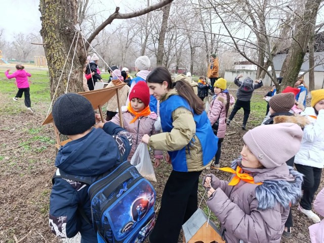 Доброе дело — в добрые руки! Волонтёрский отряд «Дорогою добра» вместе с учениками начальной школы воплотили в жизнь маленькую, но очень важную миссию — смастерили и разместили в парке нашего хутора кормушки для птиц!