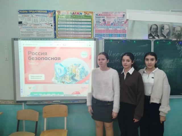 Познакомившись с видеоматериалами к уроку, школьники узнали, что национальная безопасность — это комплексная защита интересов страны, граждан, территории, экономики, культуры и информации.