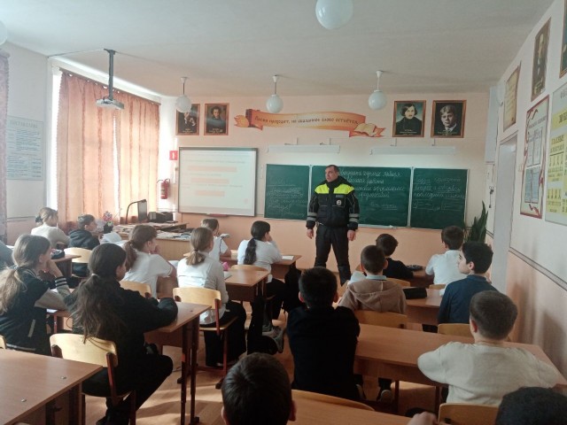27 января в рамках оперативно - профилактического мероприятия «Зима. Дети. Безопасность» инспектор по пропаганде безопасности дорожного движения госавтоинспекции отдела МВД России по Пролетарскому району младший лейтенант полиции Моисеенко Антон Геннадьевич провел с учащимися пятых классов беседу по соблюдению правил дорожного движения, повторил с ними правила БДД. Такие профилактические мероприятия играют ключевую роль в формировании культуры безопасного поведения на дороге с самого раннего возраста.