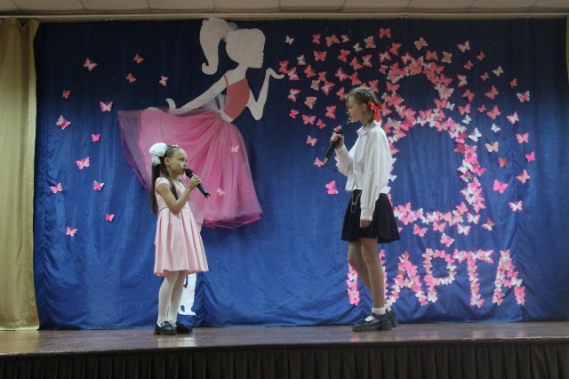 В первый весенний праздник зрители услышали стихи и музыкальные поздравления от обучающихся 6 класса и педагога нашей школы Васильченко Я.И. о весне, о женщинах, о матерях и, конечно, о любви. А также зрители увидели прекрасные танцевальные номера, сценки, песни.
