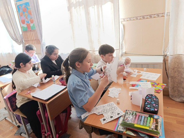 Советник директора по воспитанию и взаимодействию с детскими общественными объединениями Охрий Татьяна Владимировна совместно с обучающимися школы приняли участие во всероссийской акции «Вам, любимые». Участники программы «Орлята России» для мам и бабушек изготовили книжку - гармошку «Книжка тёплых слов», а также поздравительные открытки с 8 марта.